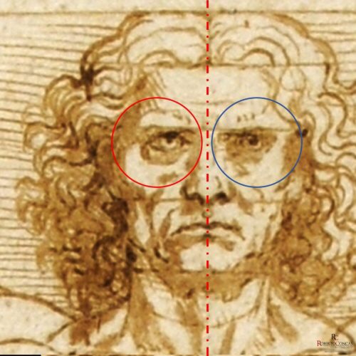 En definitiva, dos hombres en el mismo dibujo, y de edad diversa, pero diseñados para representar lo que el matemático Luca Pacioli, fraile franciscano, definía como ciencia secretísima de la Divina proporción. A este respecto, profesor Concas pone un ejemplo: «Las medidas de los brazos, que son diversas, proceden del concepto de un numero generador, 225.5 y 180,5. Haciendo restas o divisiones se obtienen todas las medidas exactas de los dos brazos».