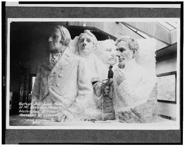 Pero Borglum se enamoró de aquel proyecto y estaba entusiasmado porque la masa de granito de aquella montaña era un enorme desafío para él y una inmejorable oportunidad para mostrar su talento. Después de realizar varios bustos en yeso de diferentes tamaños y a escala, en donde se veía a los expresidentes de cintura para arriba empezó el trabajo usando herramientas para labrar la roca con un equipo de 400 trabajadores. Hoy sus diseños preliminares se conservan y pueden verse expuestos en el propio Edificio del Museo del Memorial situado en la entrada anexa al parking