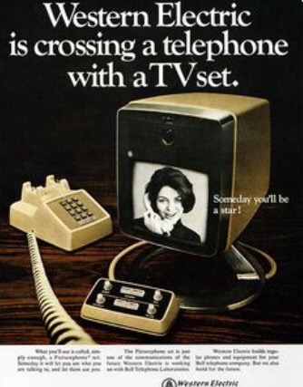 Idea de «anuncio-predicción«. Un Teléfono con televisión donde se nos hablaba del I+D de esta marca anunciándonos que en unos 40 años, tendríamos uno de estos aparatitos en casa