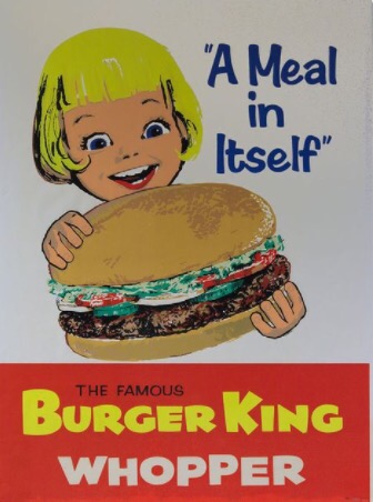 El mensaje dice: «Una comida en sí misma» y una gigantesca hamburguesa Whopper sirve como idea para destacar la misma. Los chicos siempre quieren lo mas grande,