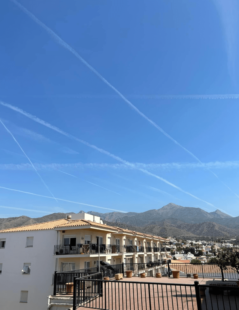 En segundo lugar- también para mí- está claro que las estelas que aparecen en el cielo aunque vengan de los motores de los aviones a reacción, no excluye al cien por cien de que algunos de esos aviones puedan estar pulverizando el cielo con productos químicos.
