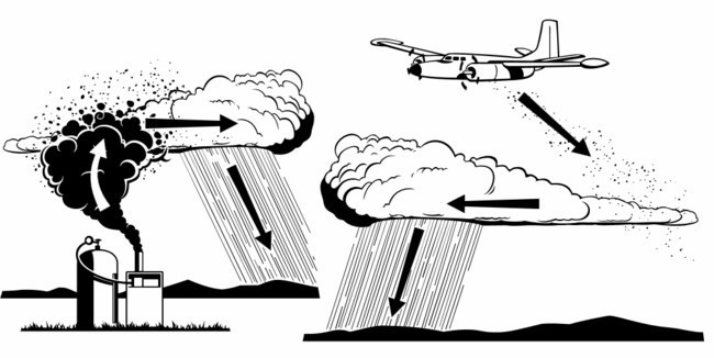 Yo lo he comprobado muchas veces y tengo que decir que “la siembra de nubes”, descubierta por Benard Vonnegutl, corroboró que el yoduro de plata podía llegar a romper los equilibrios internos de las nubes y así, modificar las precipitaciones. Avionetas para esparcirlo se han utilizado por 40 países, y se sabe que se han realizado experimentos en Israel, Rusia, China y Australia. El funcionamiento es sencillo: La avioneta sobrevuela las nubes medias o altas y lanza el yoduro de plata. Los cristales de hielo que hay en estas nubes se incrementa por los choques y se convierten en gotas de lluvia. Su misión es que llueva en una zona concreta, evitando que lo haga en otro sitio.