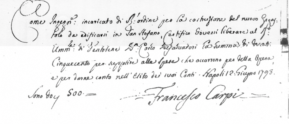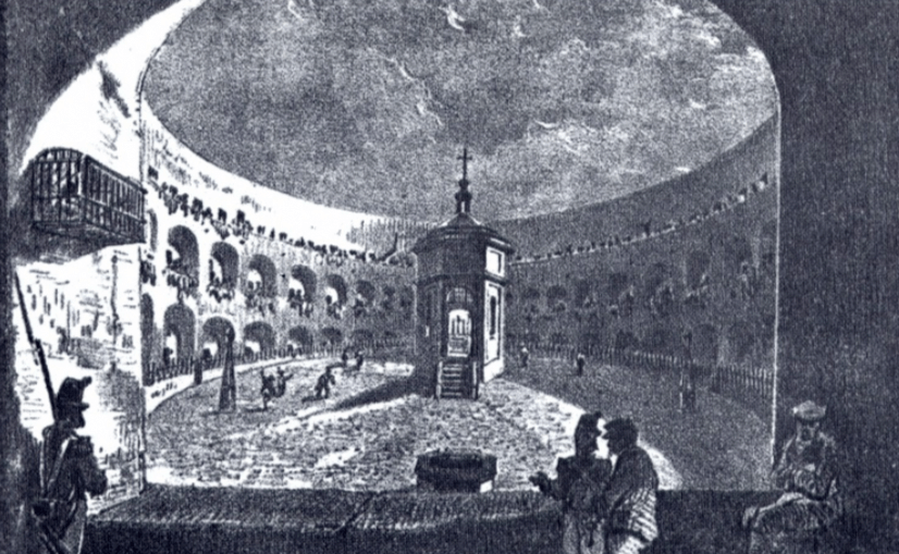 El proyecto panóptico concebido por Bentham se puso de moda y este diseño de prisiones se extendió por toda Europa. El ingeniero napolitano Francesco Carpi lo utilizo para construir la prisión de Santo Stefano con forma de estructura hemicíclica; una exedra, (palabra que en arquitectura, define a una construcción descubierta, de planta semicircular) en forma de anfiteatro matroneum, cuyo diseño estaba copiado de los planos del Teatro San Carlo de Nápoles de 1737.