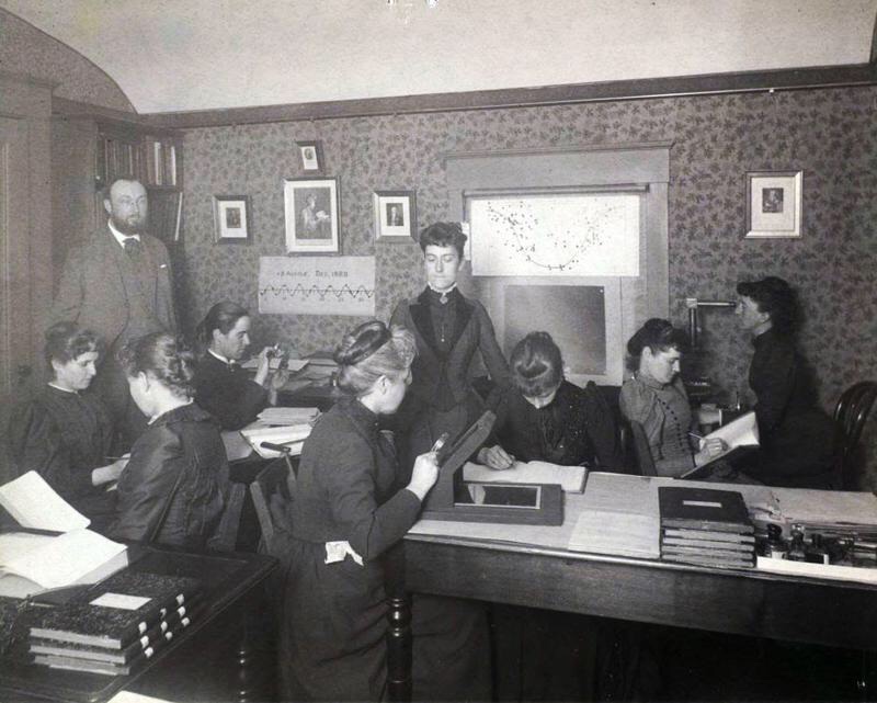A finales de siglo XIX había allí una “sala de computadoras” que realizaba las tareas de clasificación de los datos astronómicos pero aquella sala no era ningún espacioso recinto climatizado repleto de aparatos con pantallas y botones sino tan solo un cuarto estrecho con muebles de madera, que se calentaba por una estufa de aceite cuando el frío arreciaba en Cambridge, Massachusetts. Las “computadoras”, o “calculadoras”, de esa sala no eran máquinas sino una serie de mujeres que el observatorio contrataba para hacer las tareas más tediosas de las investigaciones astronómicas.