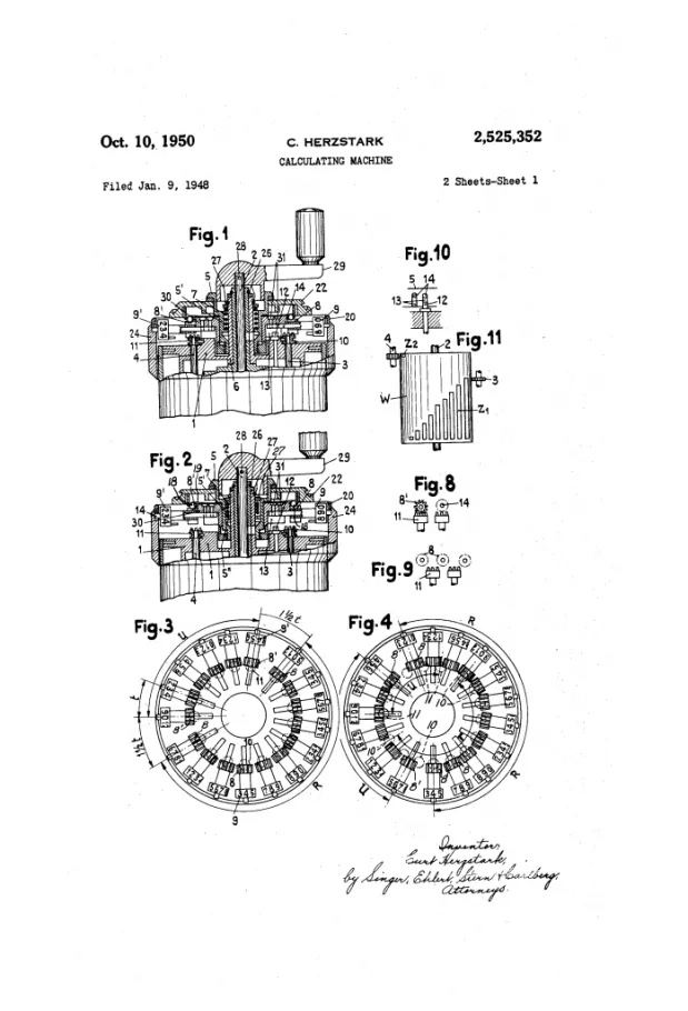Dibujo de una de las patentes de Herzstark